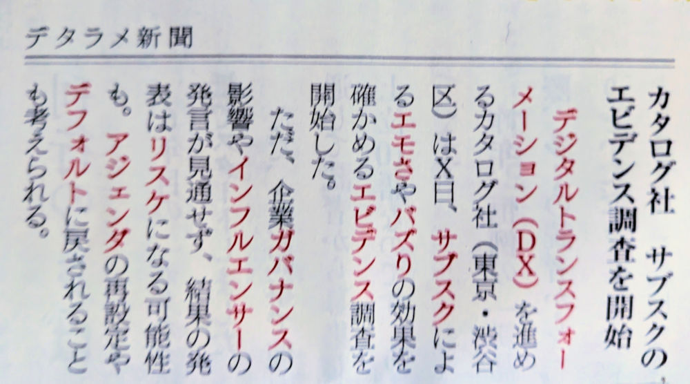以下の写真は某雑誌が現代日本語の典型として提示したもので、カタカナの注解辞書を創られていました。