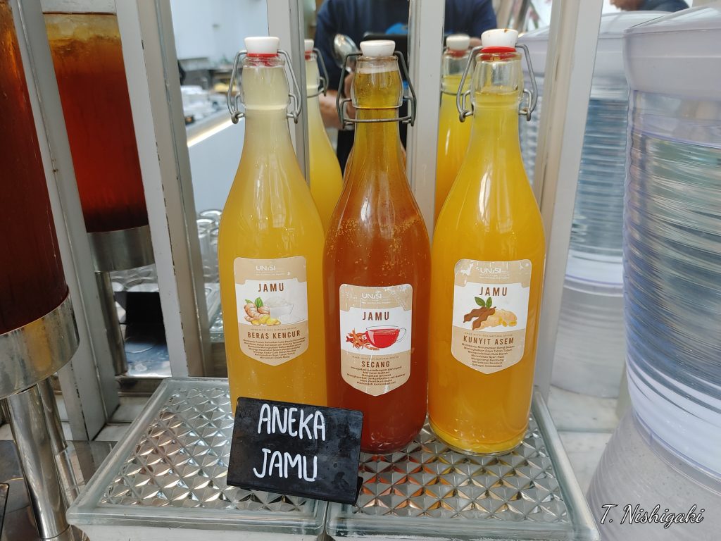 ジャカルタやジョグジャカルタのホテルの朝食でもジャムゥ飲料が提供されている。