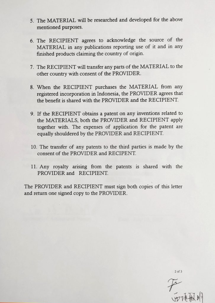 ブアメラの物質移転協定(Material Transfer Agreement, MTA)に調印いたしました。