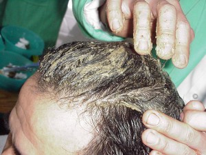 ジャカルタの育毛専門美容院 ノニ果実入り特殊ペーストで育毛治療