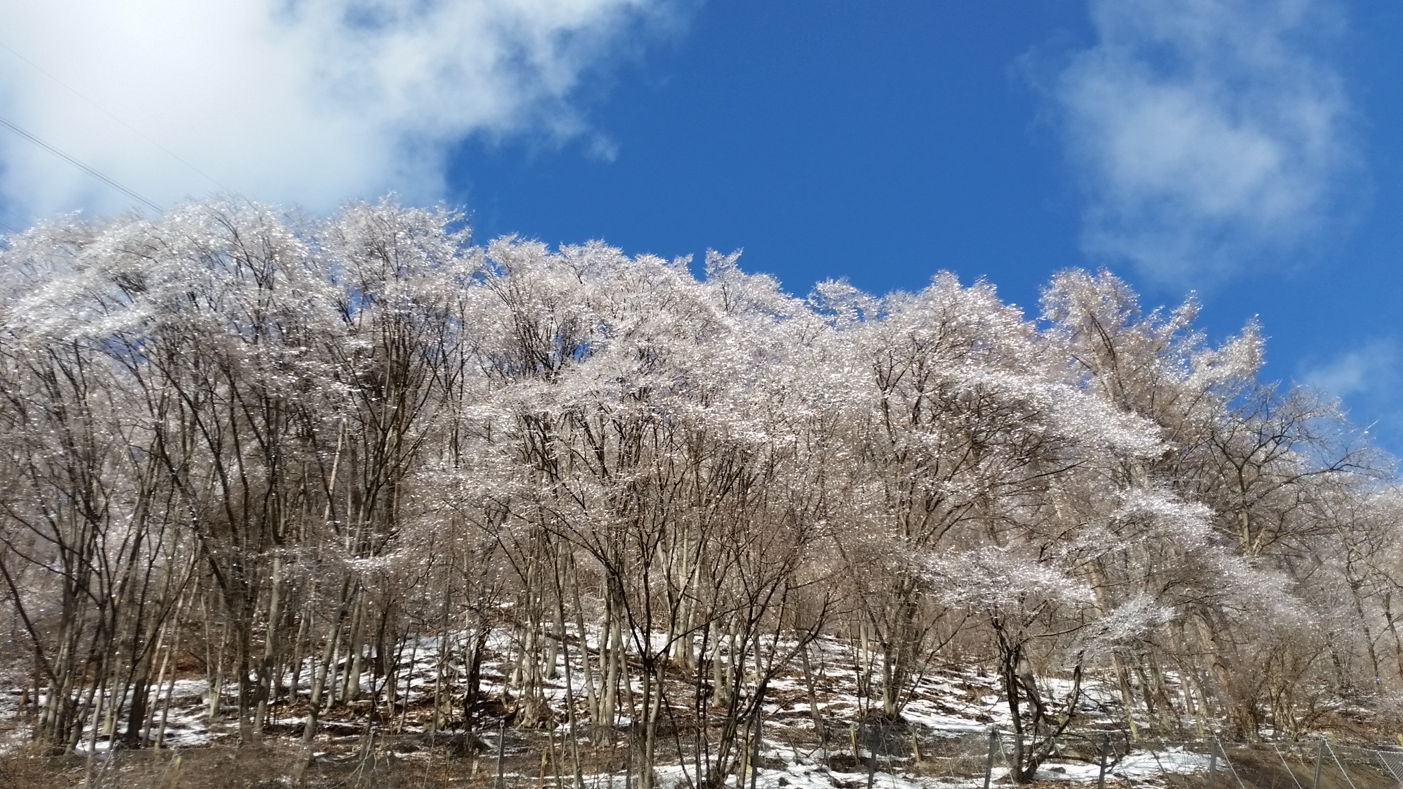 2月2日、真田雪村で有名な小諸・上田に通じる道路を三才山(みさやま)峠に向かうと、偶然にも雨氷に出あうことができました。